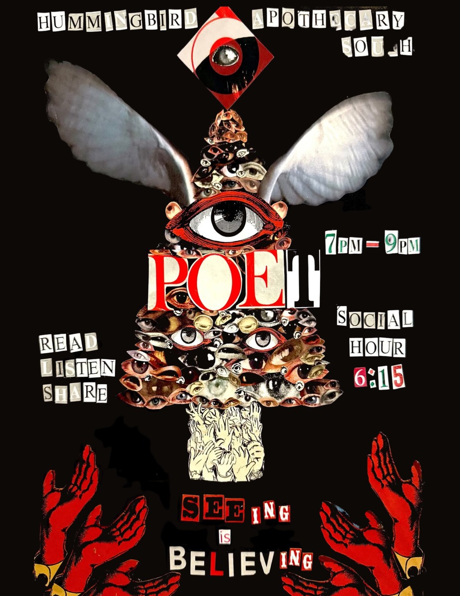 Seeing is believing! Join us on Wednesday, December 17 for our final poetry reading of 2025. Social hour from 6:15 - 7pm and reading from 7 - 9pm at our South Location.